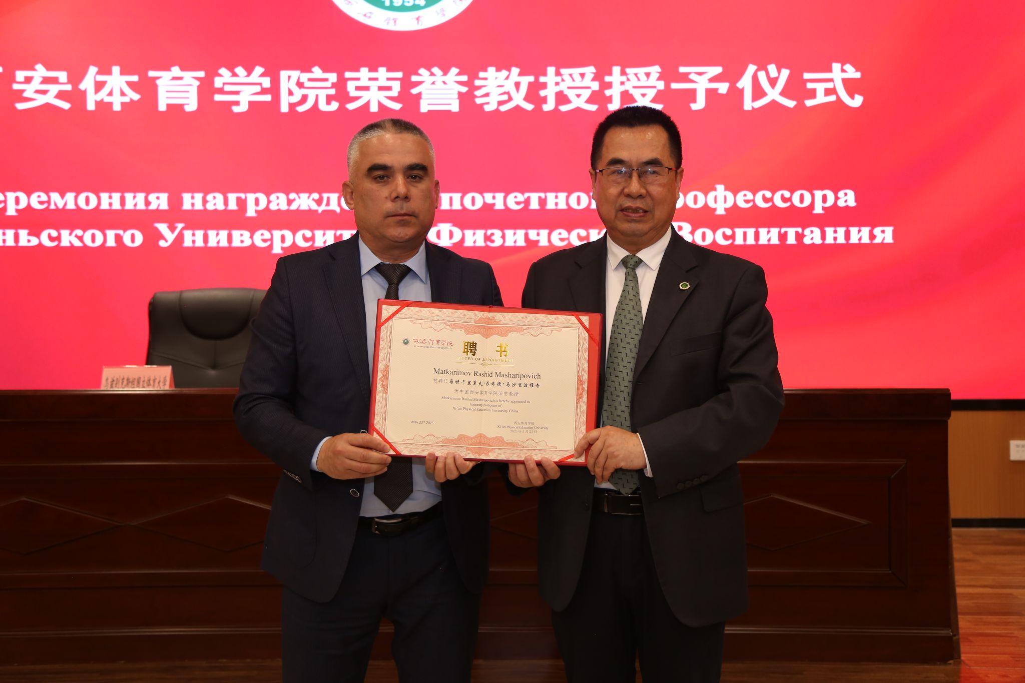 李富生与马特卡里莫夫・拉希德・马沙里波维奇共同签署了合作备忘录。未来双方将在学生交换、师资交流、联合科研、赛事合作等多个领域展开务实合作,为两校师生搭建更为广阔的国际交流平台,同时也为两校在体育领域的协同发展奠定坚实基础。