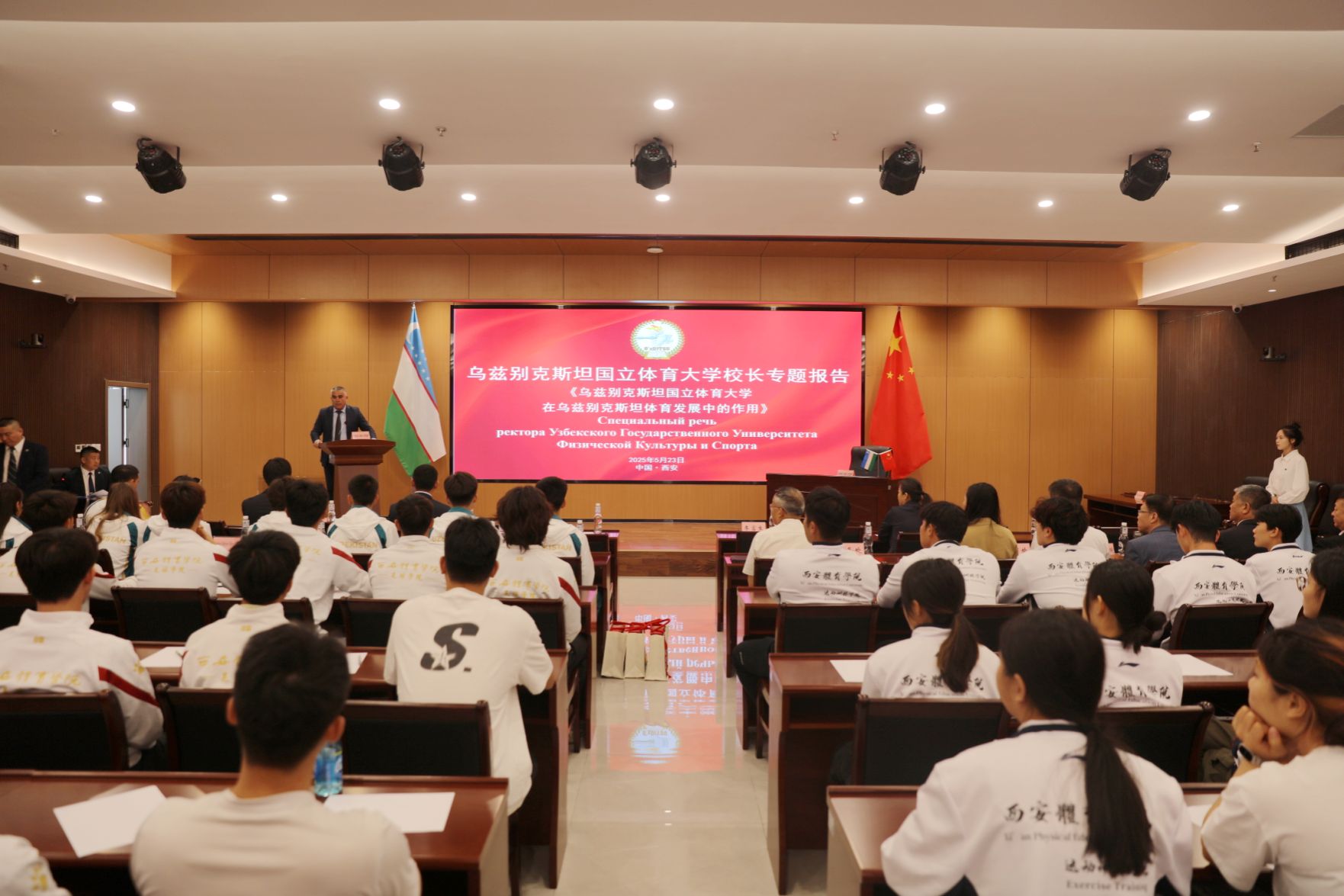 马特卡里莫夫・拉希德・马沙里波维奇教授为我校师生作《乌兹别克斯坦国立体育大学在乌兹别克斯坦体育发展中的作用》专题报告,介绍乌兹别克斯坦国立体育大学的发展、特色、人才培养及对体育事业的贡献,分享了体育教育与产业融合的经验。