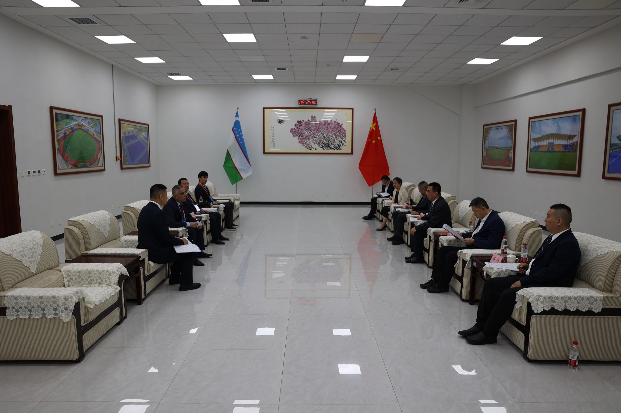 本网讯 5月24日,我校举办三方非正式座谈交流会。乌兹别克斯坦共和国体育部专业体育教育机构工作司长阿尔济库洛夫·穆库姆·乌拉洛维奇、国立体育大学校长马特卡里莫夫・拉希德・马沙里波维奇、塔什干国立体育大学国际交流负责人尤尔多舍夫·穆赫里丁·卡莫利丁乌利与陕西省体育局副局长邹军、我校校长李富生等出席。
