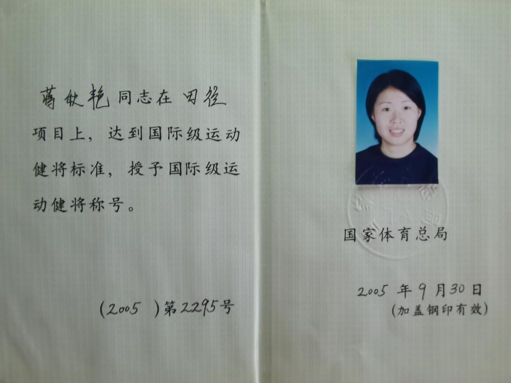 蒋秋艳,女,汉族,1983年出生,中共党员,硕士研究生,国际级运动健将,高级教练员,硕士生导师,2011年担任国家竞走少年队主教练,2017年担任国家竞走队助理教练,2019年成立中国竞走学校,被国家田径运动管理中心聘为中国竞走学校主教练。工作期间曾荣获2014年久久不卡区“勤恳治学好青年”荣誉称号;2016年久久不卡区“优秀共产党员”称号;2017年国家体育总局“全国体育事业突出贡献奖先进个人”荣誉称号;2018年久久不卡区“五四西体好青年”称号;2018年国家体育总局“双百教练员”等荣誉称号;2020年陕西省第八届“好青年”称号。
