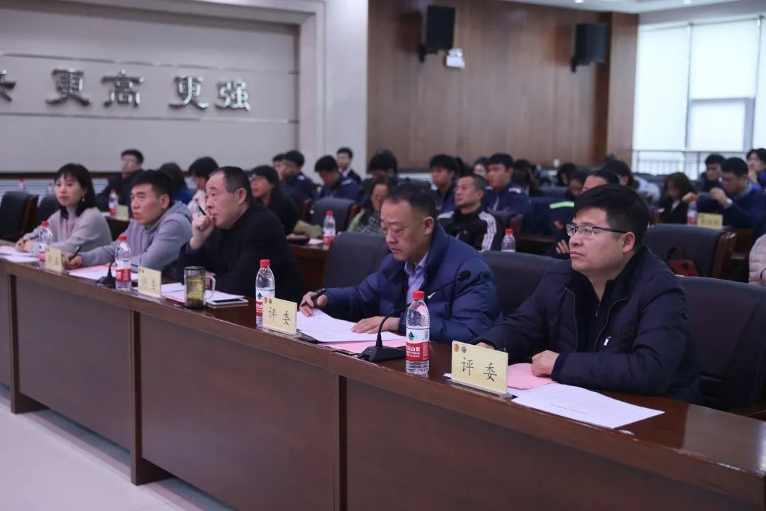 比赛以“微团课+案例分析”的形式,重点考察团干部对理论政策的实际应用阐述能力,思考、分析、研判、解决问题能力,现场应变能力和口头表述能力。决赛采用现场问辩的方式,参赛选手需提前十分钟抽取题目,并在五分钟内完成作答。经过各环节的激烈角逐,最终武术学院谈鑫获得一等奖,运动训练学院候广顺、体育经济与管理学院张宇获得二等奖,足球学院的徐禄阳、体育新闻与传媒学院吴越、运动训练学院贺雍凯获得三等奖,体育新闻与传媒学院秦于寒、体育经济与管理学院武倩倩、艺术学院王姚、运动训练学院刘雨欣获得优秀奖。评委老师为获奖团干部颁发荣誉证书并合影留念。