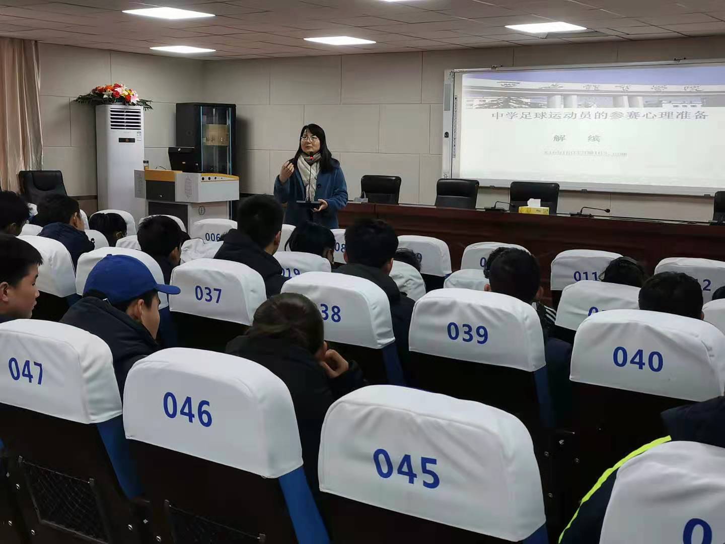 谢缤教授为足球特长生作了《关于赛前、赛中和最佳心理状态形成和调节》的讲座。讲座通俗易懂,案例生动,不仅让学生提高了对心理健康的认识,还学到了具体有效的心理调节方法。