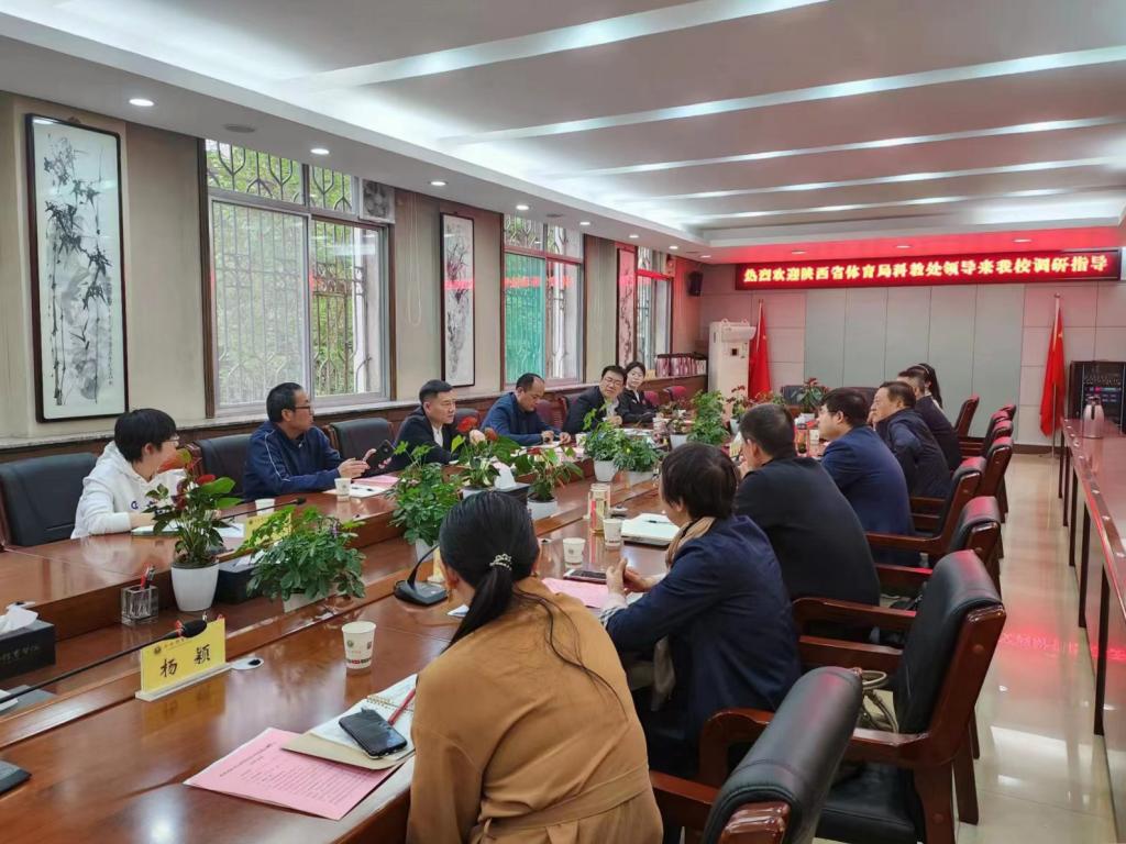 本网讯 4月13日,陕西省体育局科教处处长张一凡带领科教处及体育科学研究所一行6人来我校调研考察。我校发展规划处、科研处、研究生部、运动与健康科学学院负责人、运动与健康科学学院教授代表等参加调研座谈会。