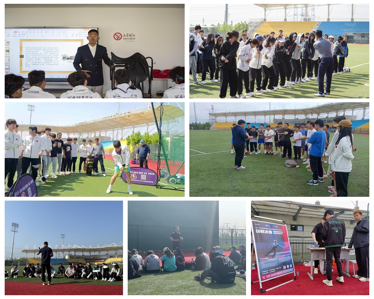 本网讯    为了进一步深化校企合作,促进新兴项目推广,拓宽学生专项技能,开拓学生眼界,日前,我院邀请陕西省手球曲棍球棒球垒球运动管理中心、陕西省现代五项协会,学院校企合作单位,在我校鄠邑校区为体育教育专业大一大二近900名学生开展了软式棒垒球、橄榄球、高尔夫、击剑、现代五项、马术、健身、冰雪项目等体育项目的推广与体验活动。