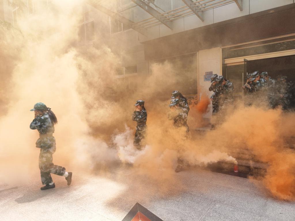 本次演练模拟学生所处区域突发火情,全体参演人员紧急避震逃生并向安全区域紧急疏散。随着“演练开始”的指令,模拟起火点现场顿时烟雾弥漫,消防综合演练随即正式开始。全体参演学生在辅导员老师和工作人员的指导下,按照“分两行、靠两边,先底层、后高层”的疏散程序,迅速有序地撤离,根据指定路线向紧急避险场所集结。所有参演人员抵达指定地点,并核实人数无误,疏散演练圆满结束。整个过程有条不紊、井然有序,我校2022级学生“科学、有序、快速、安全”的应急处置能力得到了提升,同时也体现出了较强的组织性、纪律性和行动力,达到了预期目的。