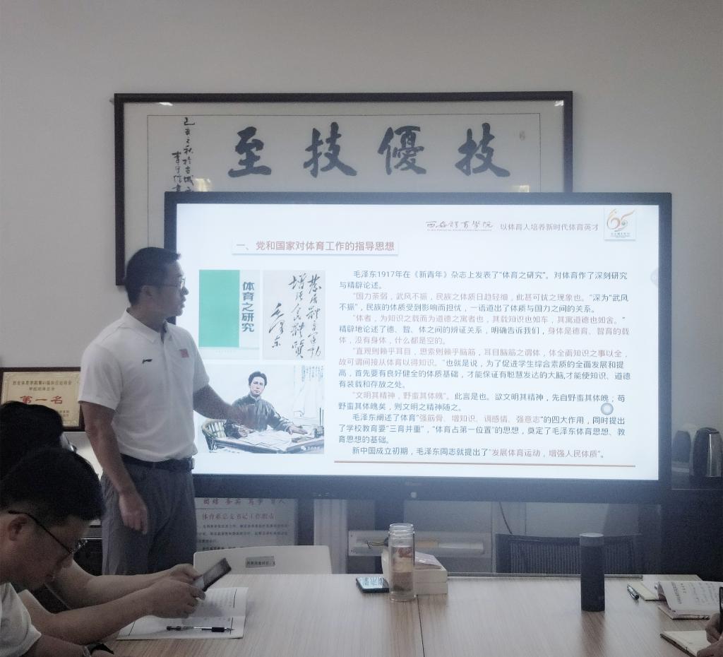 高月宏领学了《习近平著作选读》第一卷中“加快构建新发展格局,着力推动高质量发展”、“群众路线是党的生命线和根本工作路线”、“实施科教兴国战略,强化现代化建设人才支撑”等相关内容。他回顾了历年来国家领导人对体育、教育工作的重要讲话重要指示及国家对体育人才培养和就业的新要求,运用“乒乓外交”“女排精神”“百年奥运三问”诠释体育精神的时代价值,结合学院的人才培养理念,阐述了在新时代“体育强国,健康中国”战略及落实国家“双减”政策背景下,体育专业发展存在机遇与挑战,并对学院人才培养、校企合作、毕业生就业工作等改革措施进行了解读。